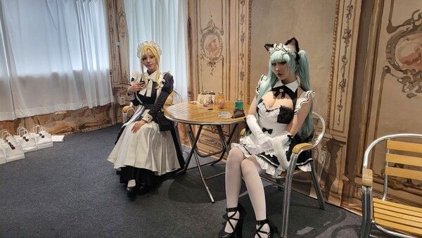 전기 공간 바깥에 마련된 메이드 카페에서는 현장 관계상 테이크아웃 전용으로 카페가 운영되고 있으며, 전문 코스플레이어들이 분한 메이드 프라바티, 에이드의 모습과 식음료 구매 특전 굿즈와 함께 만나볼 수 있다.