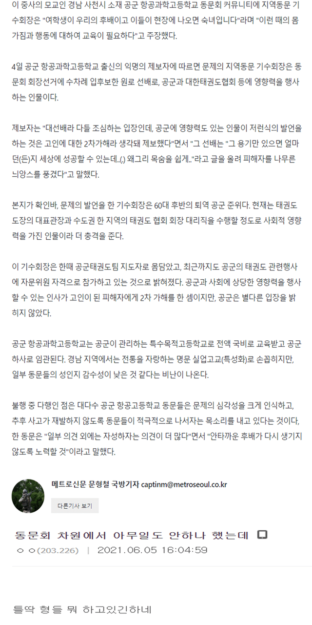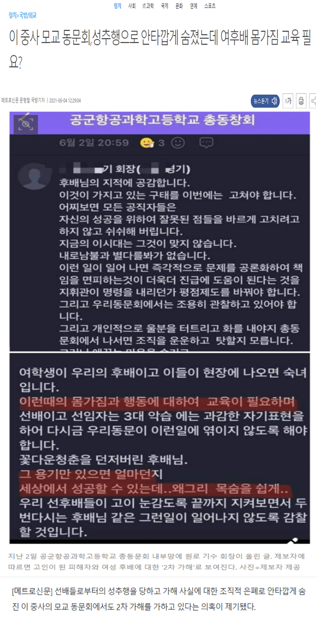 같은 동문이면서 보호는 못해줄망정 회유하고 협박을 했다고??