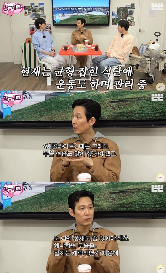 이정재는 "요즘 '오징어게임2' 후반 촬영 중이라 식단 다이어트를 계속 하고 있다"며 근황을 전했다.