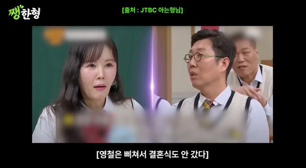 이날 게스트로 출연한 장영란은 "남편한테 '오늘 영철 오빠랑 쨍한형 촬영한다'고 했더니 '거길 왜 가'냐고 하더라. 'PPL 겸 다녀온다'고 했더니 '거기 PPL이 왜 들어가'라고 말했다"며 김영철과의 촬영에 질투하는 한창의 모습을 언급했다.