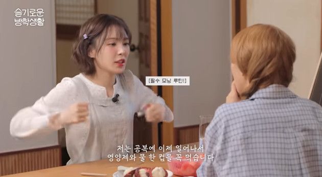 이날 슬기와 함께 생활 계획표를 짜던 웬디는 "나는 공복에 일어나서 영양제와 물 한 컵을 꼭 먹는다. 그래서 나는 일주일 치 영양제를 미리 빼놓는다. 내가 너무 잘 부으니까 그런 것도 있고 열 가지 정도 되는 영양제를 잘 먹어서 아침을 잘 안 먹는다"고 전했다.