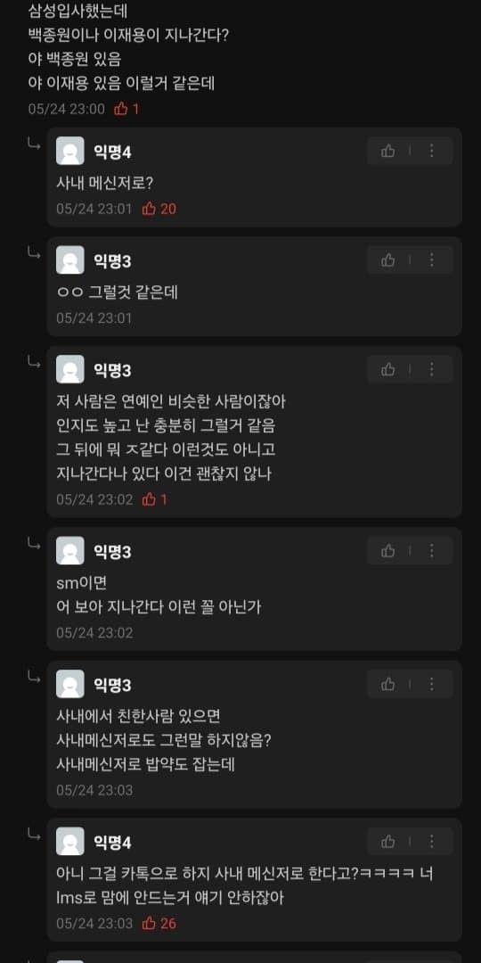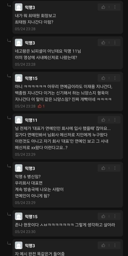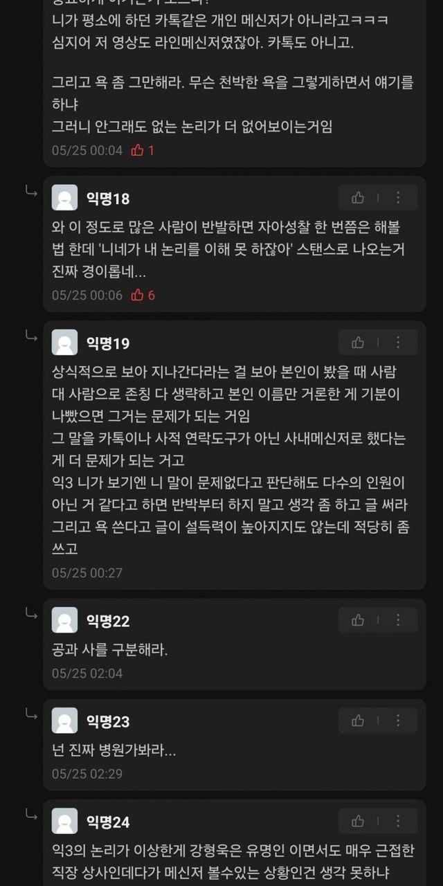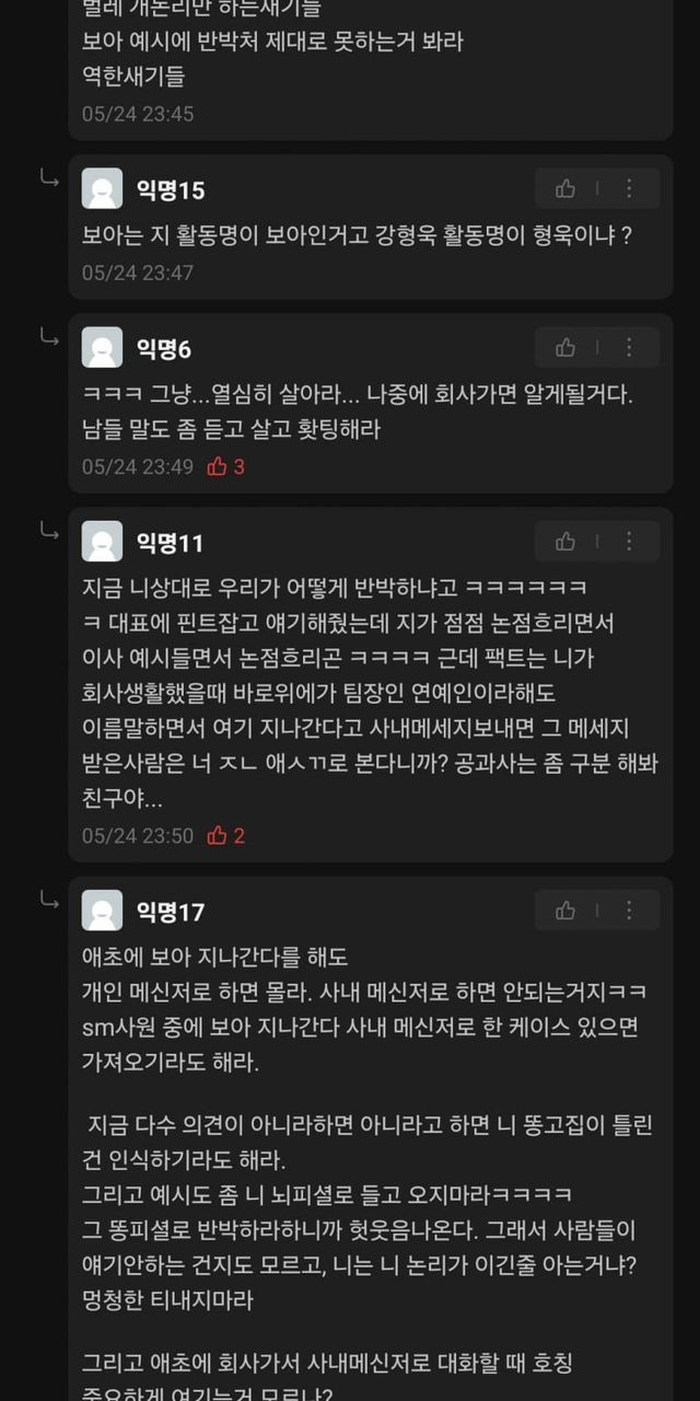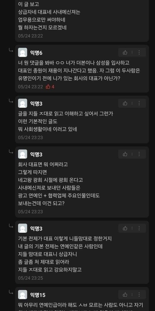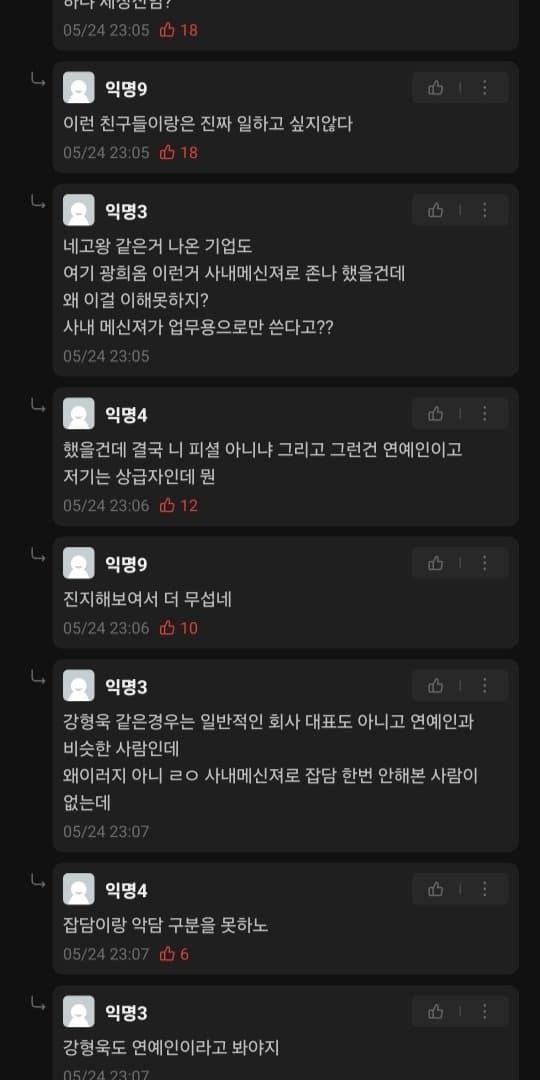 사내메신저 내용 확인을 가지고 신나게 욕을하는 모습...