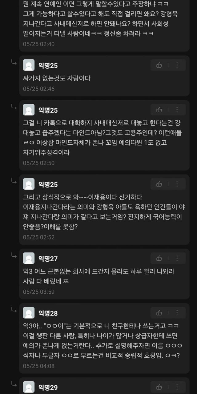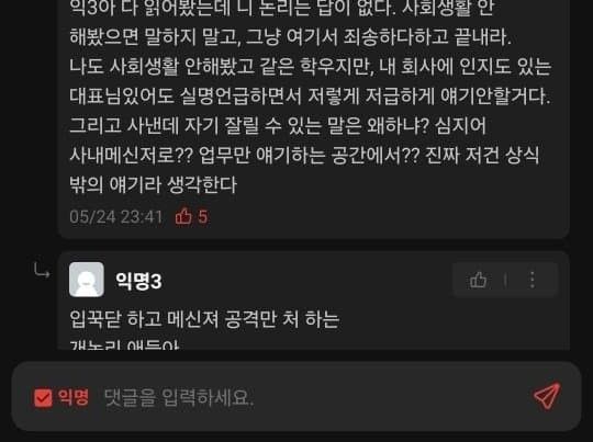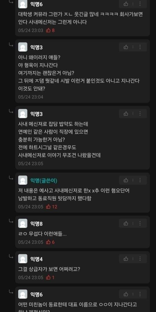 본인도 직장일할때 직원들이 사내 메신저로 하도 욕을 해대서