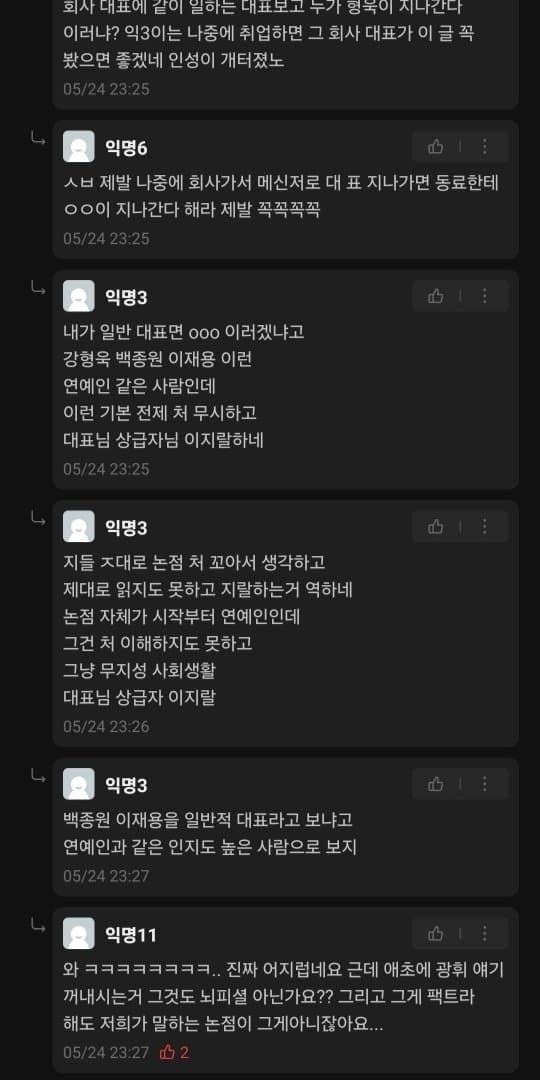 댓글반응 이런데도 별말 안하는거보면