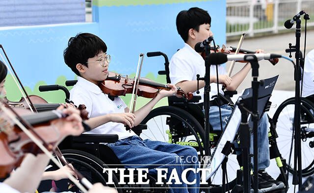 더불어 이날 행사에는 예체능 분야 멘토링 교육 프로그램 '아카데미 상상인'을 통해 전문 음악 교육을 받은 휠체어 사용 아동들로 구성된 '상상휠(Wheel) 하모니 오케스트라'의 첫 연주회도 진행됐다.