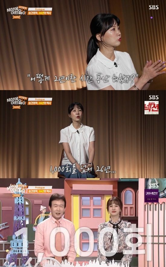 이어 박소현은 "100회때만 해도 저희는 잔치 분위기였다. 어떻게 이걸 2년을 끌고 왔지하며 축하했다. 1,000회를 넘고 26주년이 올 거라는 건 상상 못한 일이다. 제 인생에 이런 일이 오더라"고 이야기했다.