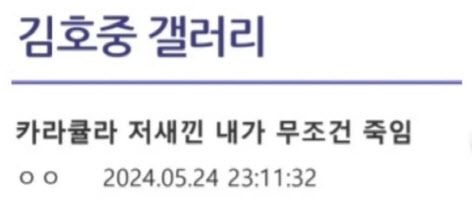 카라큘라에 따르면 지난 24일 오후 11시 11분께 ‘김호중 갤러리’에 “카라큘라 저 XX 내가 무조건 죽임”이라는 글이 올라왔다.