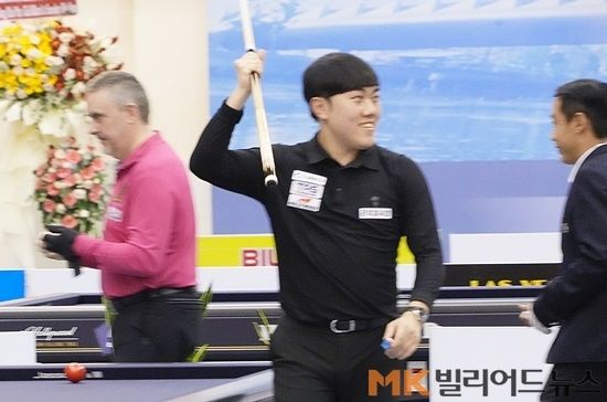 하스하스는 8강 1턴에서 멕스를 맞아 경기 후반 19이닝까지만 해도 24:29로 끌려갔으나, 20이닝 째 하이런16점을 터뜨리며 단숨에 전세를 뒤집었다. 하스하스는 이후 이닝 째 7점장타로 매치포인트에 다다른데 이어 24이닝 째 남은 1점을 채우며 그대로 경기를 마무리, 4강까지 오르는 기염을 토했다. [호치민(베트남)=김동우 MK빌리어드뉴스 기자]