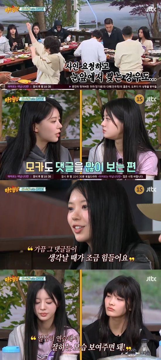 모카 또한 "민주와 비슷하다. 댓글 많이 보는 편이다. 거기에 상처 받는 건 아닌데 무대에 섰을 때 댓글이 생각날 때가 있다. 무서워진다"고 토로했다.
