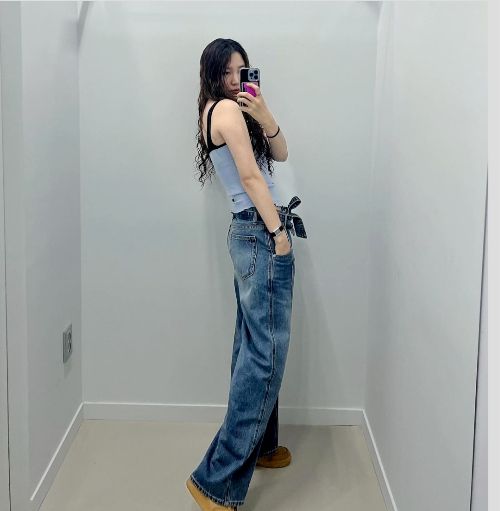 공개된 사진에는 히피 펌을 한 진아름의 모습이 담겼다. 민소매 티셔츠와 와이드 데님으로 힙한 스타일을 완성했다.