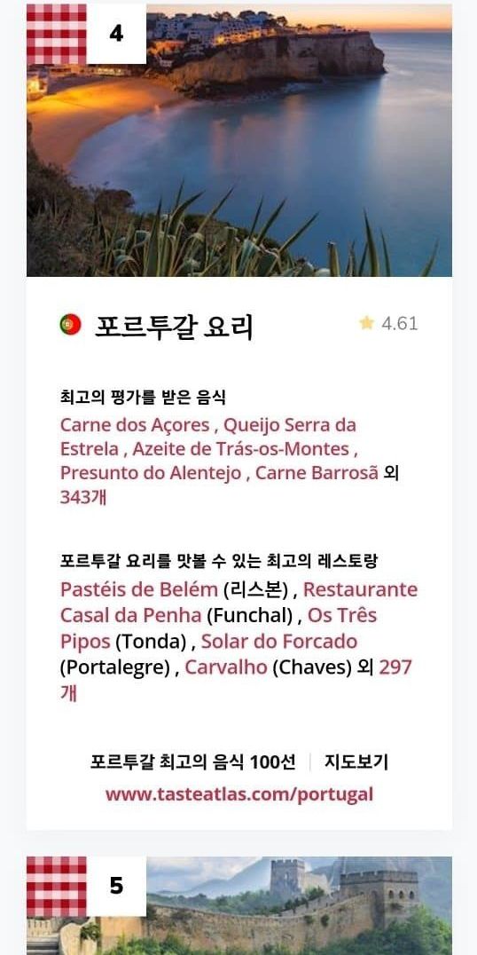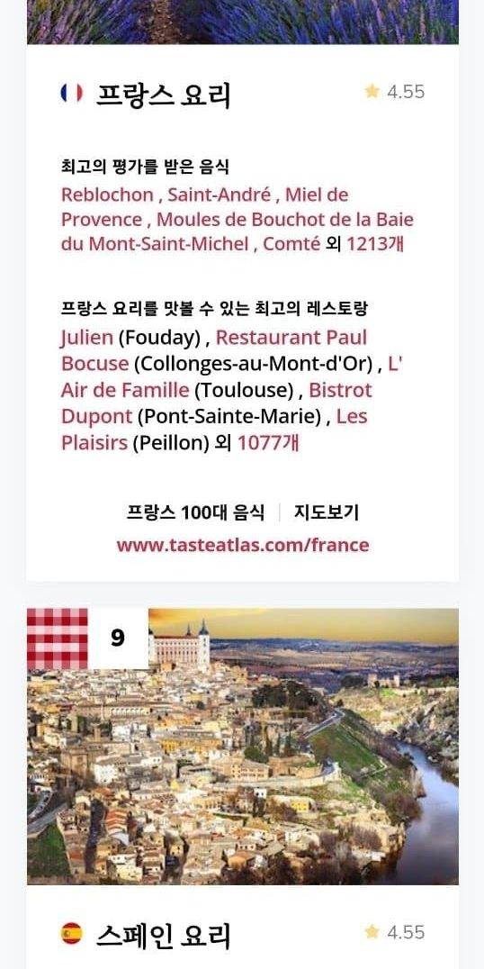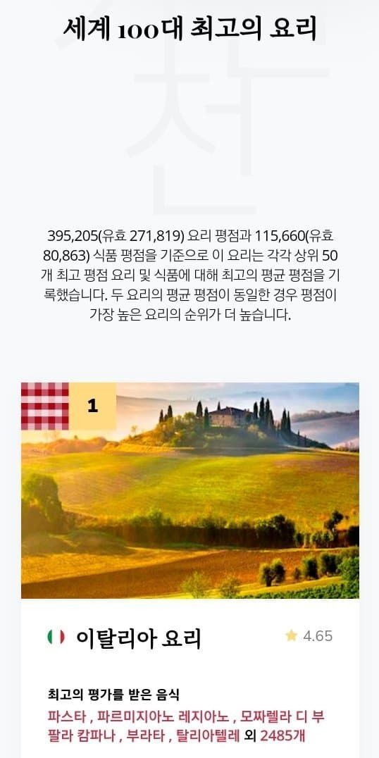 2024년 음식이 맛있는 국가 탑10
