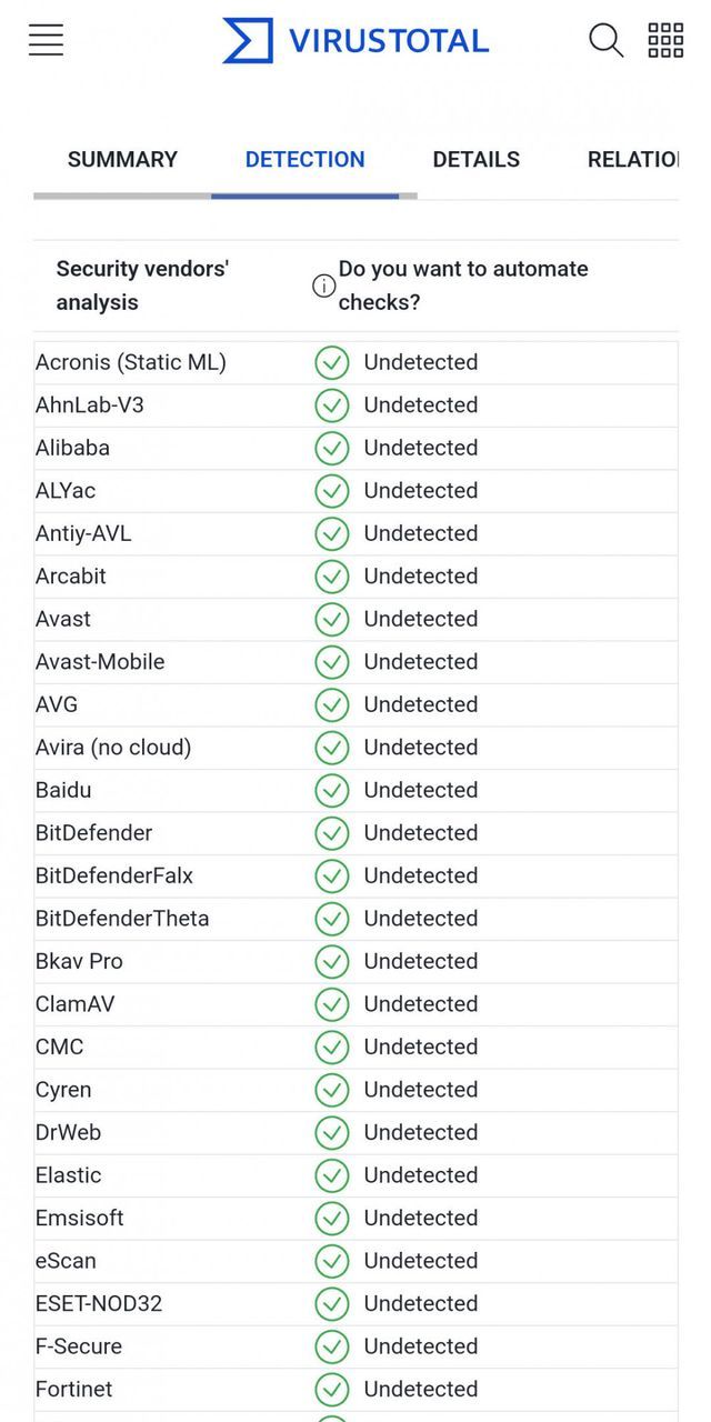1. 일단 바이러스토탈에서 악성코드 검출 안됨.