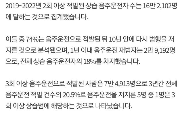 연간 음주운전자 약 12만 2천여 명 ( 물론 걸린 사례만 )