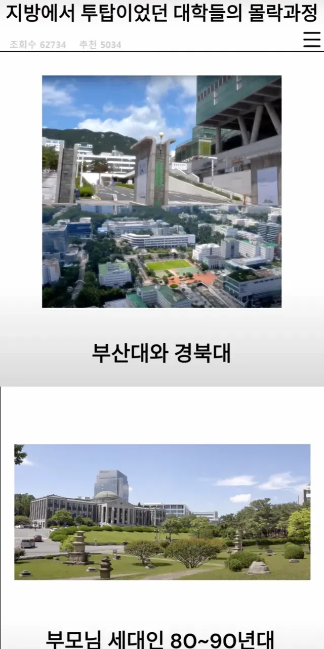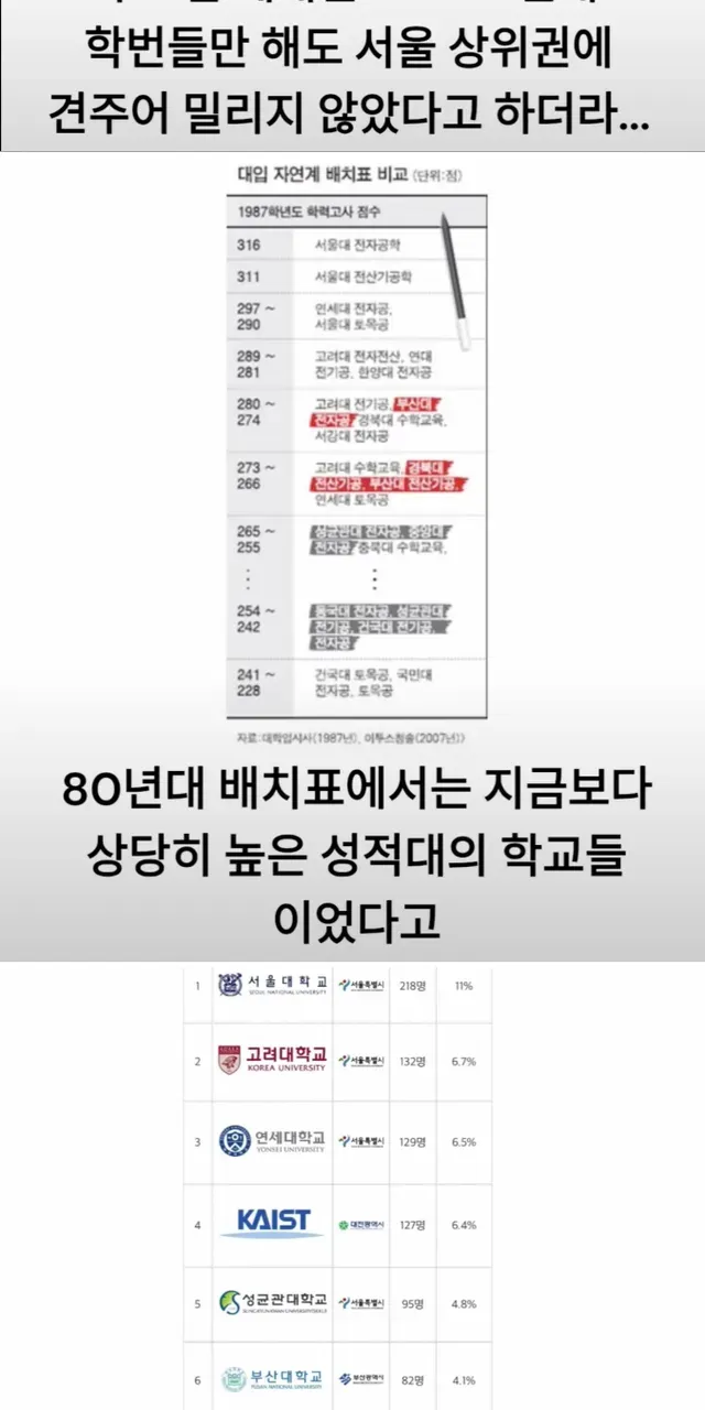 지방에서 투탑이었던 대학들