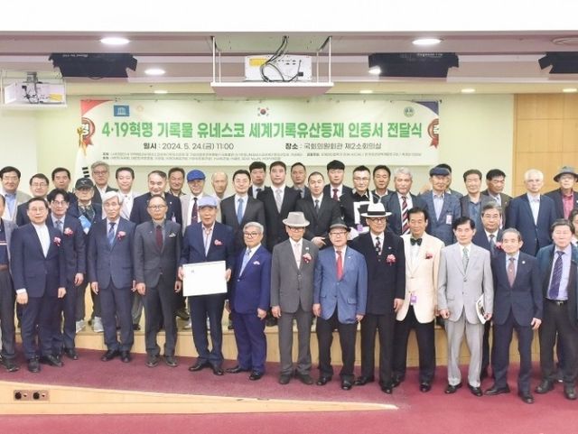 4·19혁명 기록물 유네스코세계기록유산등재 인증서 전달식이 지난 24일 오전 11시 여의도 국회의원회관 제2소회의실에서 개최됐다.