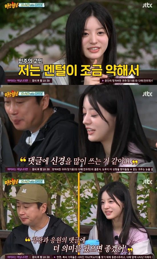 아일릿은 "데뷔 후 힘든 일이 많지 않냐"라는 질문에 저마다 고충을 꺼냈다. 원희는 "눈치를 많이 보게 된다"고 밝혔고, 민주는 "멘탈이 약하다. 댓글 보면 깊이 많이 빠진다"고 털어놨다.