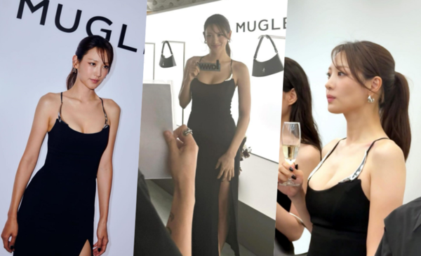 공개된 사진 속 수연은 블랙 트임 드레스를 입고 행사장을 찾은 모습이다. 완벽한 S라인을 선보인 수연은 묵직한 글래머몸매를 선보였다.
