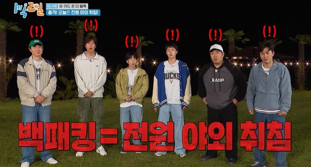 멤버들이 ‘백패킹이 뭐냐’며 의아한 표정을 짓자, 제작진은 “전원 야외 취침을 하는 것”이라고 말했다. 멤버들은 ‘왜요’라며 일제히 반발했다. 맏형 연정훈은 “왜 좋은 전망의 방을 두고 백패킹을 하냐”고 분노했다.