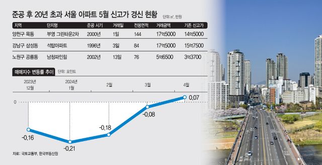 구축 아파트 매매가격이 상승 흐름을 보이자 신고가 거래도 잇따르고 있다. 특히 이달 서울에서 기록된 아파트 신고가 거래 101건 중 41건이 준공 후 20년이 넘는 아파트에서 나왔다. 2000년 준공된 양천구 목동 '부영그린타운 2차' 144㎡형은 지난 1일 17억5000만원에 팔렸다. 이전 신고가 대비 2억2800만원 오른 가격에 매매 거래됐다. 1996년 지어진 강남구 삼성동 '석탑아파트'의 전용 84㎡형은 지난 3일 17억5000만원에 거래되며 종전 신고가(15억7500만원)보다 1억7500만원 높은 가격에 손바뀜됐다.