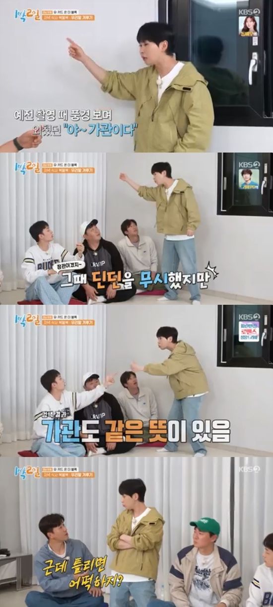 딘딘은 예전에 촬영을 하면서 좋은 풍경을 두고 자신이 "가관이다"라고 했다가 무시당했지만 알고 보니 가관에도 장관과 같은 뜻이 있었다고 했다.