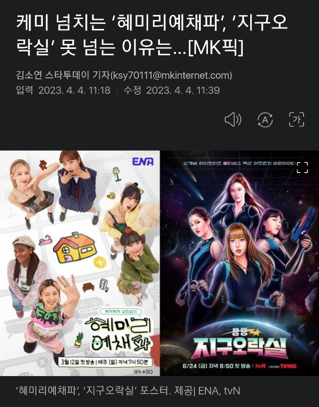 혜미리예채파는 혜리 말고는 예능캐릭터가 부족하다는 분석