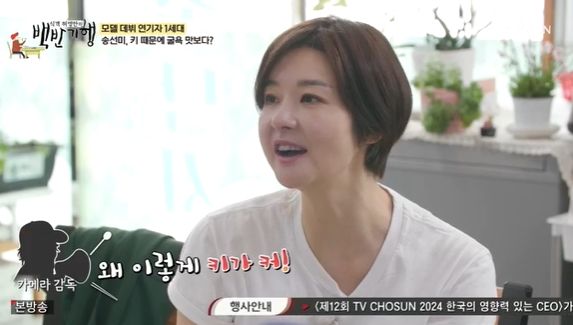 송선미는 "카메라 감독님들이 '왜 이렇게 키가 크냐'고 하셨다"며 174cm 장신을 자랑하기도.