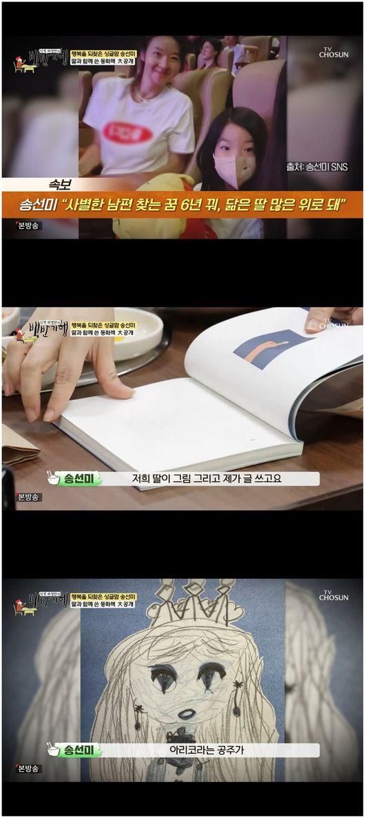 또한 송선미는 딸과 함께 쓴 동화책도 공개했다. 동화 속 딸 아이가 엄마에게 용기를 내라고 말하는 대목을 언급하며 "실제 딸 아이가 저에게 해 준 이야기이기도 하고, 삶을 살아나갈 때 가끔은 두렵고 그래서 주저하게 될 때 항상 이 말을 저에게도 하고 저희 딸 아이에게도 해주기도 한다"라고 말했다.