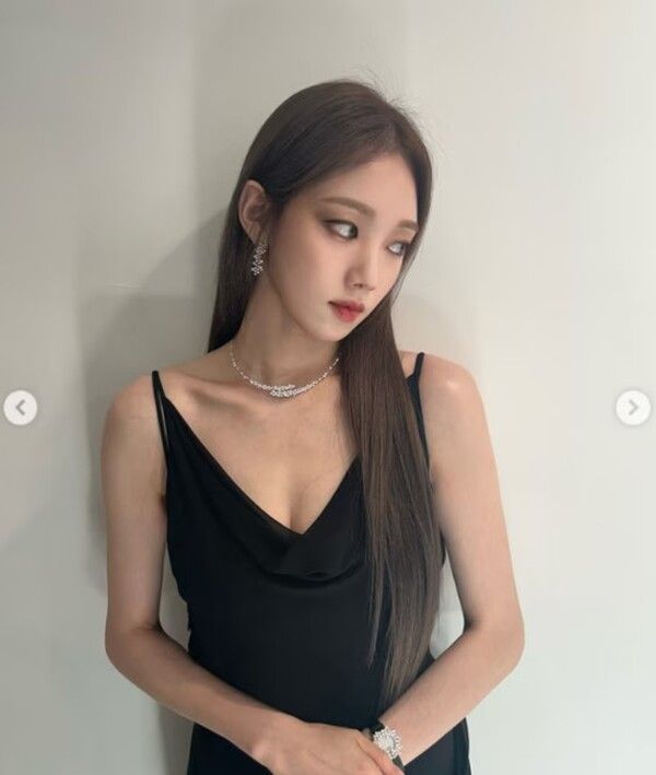 사진 속 이성경은 등라인과 가슴라인이 깊게 파인 블랙 원피스 드레스를 입고 포즈를 취하고 있다. 드레스는 이성경의 깔끔하고 우아한 이미지를 더욱 돋보이게 만들고 있으며, 특히 깊은 칼라와 드레스 소재는 그녀의 매력을 한층 더 극대화하고 있다.