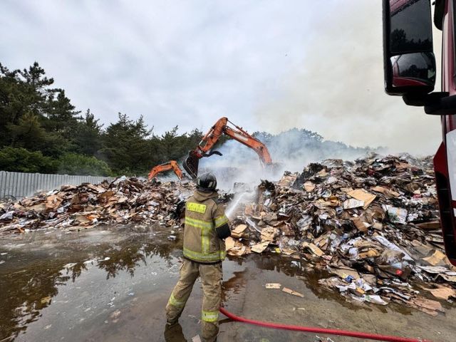 26일 경남소방본부에 따르면 전일 낮 12시24분쯤 창녕군 등지일반산업단지 야적장에 쌓여있던 폐지에서 불이 났다는 신고가 접수됐다. 소방당국은 이날 오후 3시 23분쯤 대응 1단계를 발령하고 연소 확대 방지에 총력을 기울였지만 폐지 적재율이 많아 이를 하나씩 분리 조치, 진화하는 과정을 거치면서 진화작업에 어려움을 겪었다.