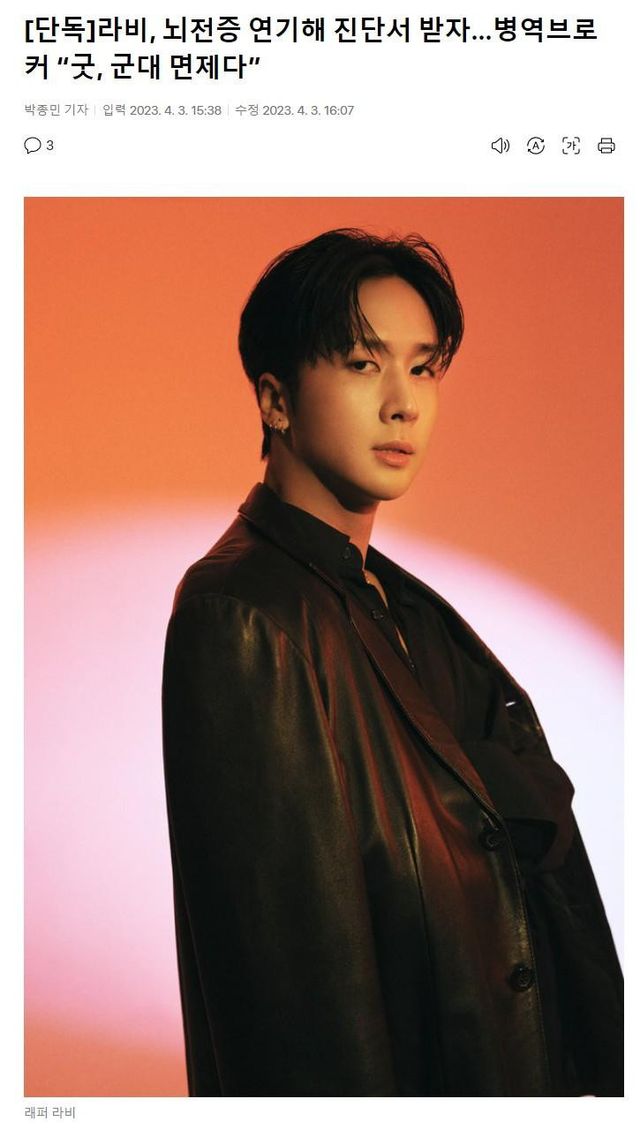 같은 해 6월까지 약 처방 등 진료를 받은 라비는 결국 뇌전증 관련 진단이 담긴 병무용 진단서를 발급받았다. 이 사실을 전해들은 구 씨는 A 씨에게 “굿, 군대 면제다”라는 문자메시지를 보냈다. 이후 라비는 중앙신체검사소 정밀 신체검사 전날 저녁과 당일 아침에만 뇌전증 치료약을 복용하는 등 방법으로 사회복무요원 복무 대상인 4급 보충역 판정을 받았은 것으로 조사됐다.