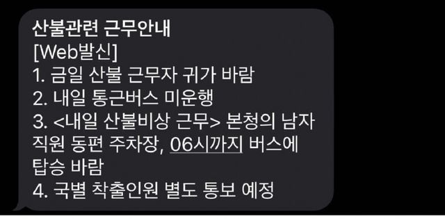 산불진화에 “비상대기 및 집결중인” 여성공무원들은 귀가하시기 바랍니다!!