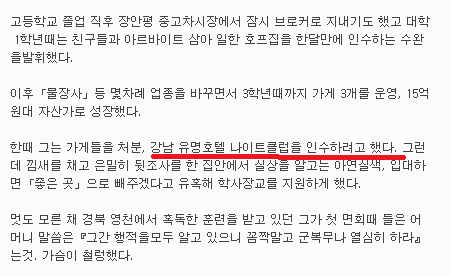 백종원은 물장사에 상당한 재능을 지니고 있던 인재 였는데 가족 압력으로 다 정리 후 군대를 학사장교 지원함