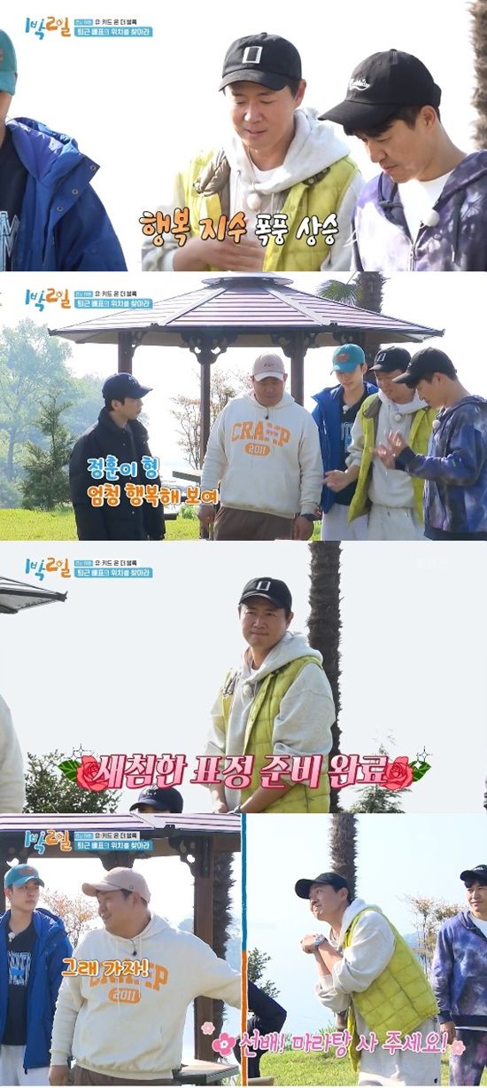 연습을 마친 멤버들은 챌린지 영상 촬영을 시작했다. 후배 역할을 맡은 연정훈은 새침한 표정으로 준비한 뒤 세상 행복한 얼굴로 챌린지를 마무리해 웃음을 자아냈다.
