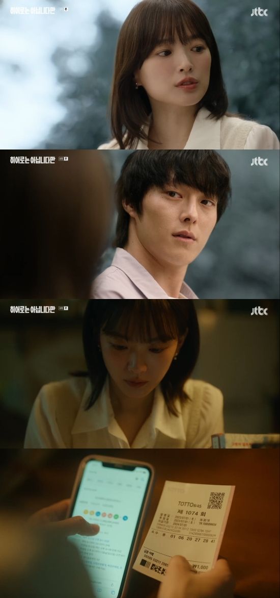 26일 방송된 JTBC 토일드라마 '히어로는 아닙니다만' 8회에서는 복귀주(장기용 분)가 과거 화재사고에서 도다해(천우희)를 구했다는 사실을 알게 된 모습이 그려졌다.