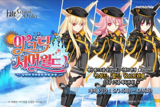 6월 4일까지 진행하는 '아크틱 서머 월드 칼데아 한여름의 마원 관광'은 북극권에 한여름의 테마파크가 등장하는 특이점이 발생, 이 사태를 해결하기 위해 시원한 여름 의상을 한 서번트들이 '아크틱 서머 월드'로 모이는 스토리다. 메인 스토리는 플레이에 따라 순차 오픈되고, QP와 서번트 육성에 필요한 강화 재료 등을 획득할 수 있다.