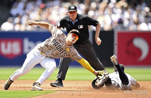 이 과정에서 3루 주자 매니 마차도가 홈을 밟았다. 김하성의 출루는 실책에서 안타로 정정됐다. 김하성의 1타점 적시타.