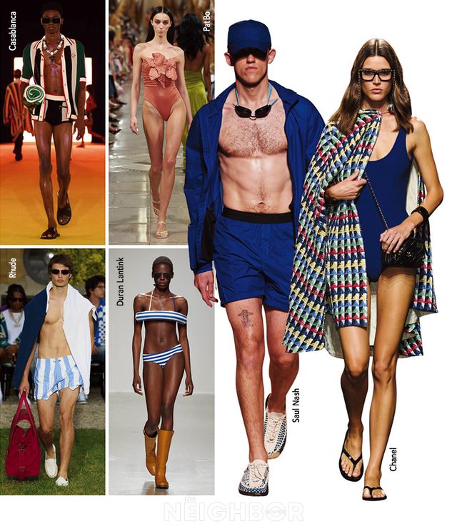 바캉스를 떠나기로 마음먹은 후 가장 먼저 하는 일은 바로 여름휴가의 하이라이트라고도 할 수 있는 수영복 쇼핑이다. 남들과는 다른 우리만의 커플 수영복을 고르고 싶다면 2024 S/S 컬렉션 속 디자이너들이 선택한 스윔웨어를 참고하자. 카사블랑카와 팻보에서 선보인 스윔웨어는 여행지에서의 신나고 경쾌한 분위기를 물씬 풍기며 물 안에서나 밖에서나 뚜렷한 존재감으로 시선을 끌기에 충분하다. 실패 확률이 낮은 아이템을 찾을 때는 컬러나 패턴을 맞추는 것도 방법이다. 루드와 뒤란 란팅크처럼 같은 스트라이프라도 두께에 차이를 두면 한층 세련된 커플 룩을 완성할 수 있다. 사울 내시와 샤넬처럼 단조로운 디자인에는 케이프나 재킷 등으로 포인트를 더한다.