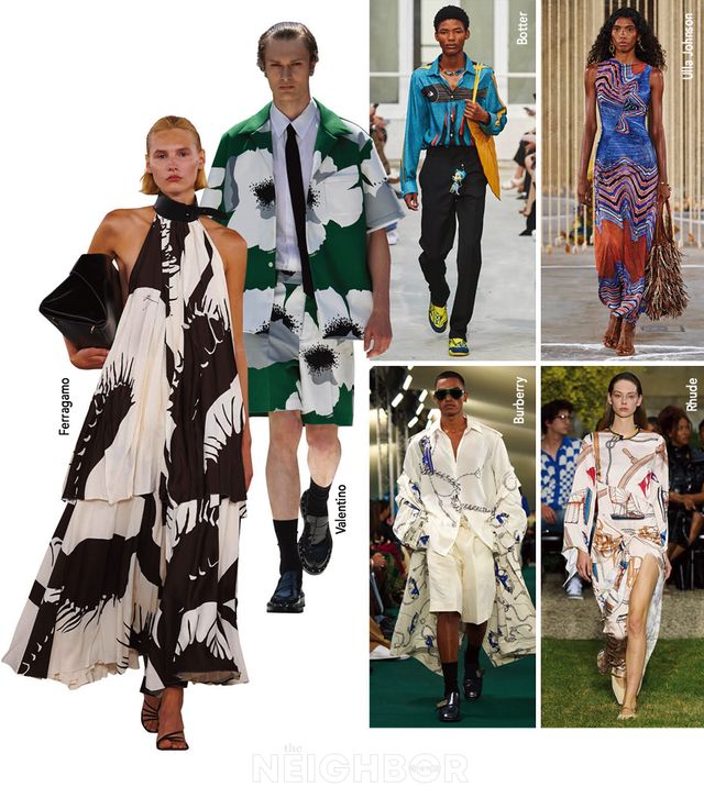 남는 건 예쁜 사진뿐이라고 했던가. 개성 넘치는 프린팅이 돋보이는 리조트 룩 한 벌이면 여유로운 분위기 가득한 바캉스 인증샷은 문제없다. 바람에 흩날리는 유연한 실루엣의 드레스와 넉넉한 핏의 셔츠가 그날 그곳의 화창한 날씨와 분위기를 강조한다. 발렌티노와 페라가모는 큼직한 꽃과 식물 프린팅으로 뚜렷한 존재감을 드러냈고, 버버리와 루드는 깨끗한 화이트 배경에 체인이나 오브제 등의 일러스트를 입혀 흔하지 않은 커플 룩을 연출하기 제격이다. 내추럴한 무드로 즐기고 싶을 때는 보터와 울라 존슨처럼 선명한 색감에 독특한 패턴과 프린트를 더해 완성한 에스닉한 스타일을 선택해보자.