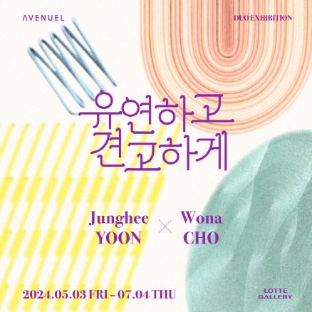 윤정희 작가는 물질, 이미지, 정보 등 모든 것이 과잉인 시대를 살아가는 현대인들에게 ‘덜어냄’의 미학에 대한 질문을 던진다. 바느질의 땀, 매듭 등과 같은 수공예적 요소들을 최소한의 단위로 분해해 직선, 곡선 등의 요소를 추출, 반복적으로 조립함으로써 추상적인 형태와 구조를 만들어낸다. 에비뉴엘 메인 월에 설치된 ‘Square Loops’ 시리즈는 스테인리스 스틸 뼈대에 실을 연속적으로 감싼 작품이다. ‘실’이라는 미미한 소재에 힘을 부여해 ‘견고한 부드러움’, ‘단단한 따스함’과 같은 촉각적 지각을 유도한다. 이를 통해 기존의 섬유가 지닌 부드러움이 아닌 완전히 상반된 물성이 만나 반응하는 낯선 감각을 선사한다.