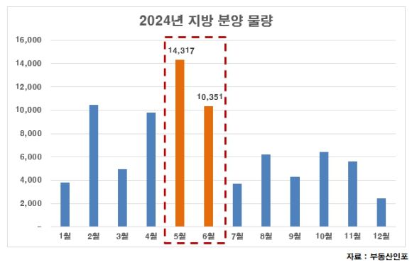 [아이뉴스24 이수현 기자] 5월과 6월 수도권(서울·경기·인천)을 제외한 지방 분양물량이 상반기 지방 전체 분양물량의 45.94%를 차지하는 것으로 나타났다.