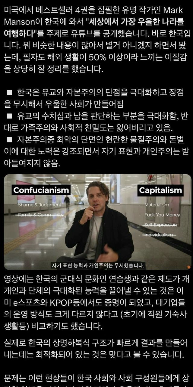 한국의 사회관념은 자본주 단점, 유교의 단점이 뚜렷함
