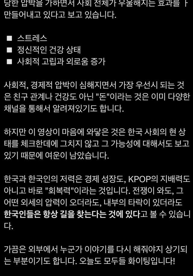 출산율은 낮고 자살률이 높은 기이한 사회구조라 함