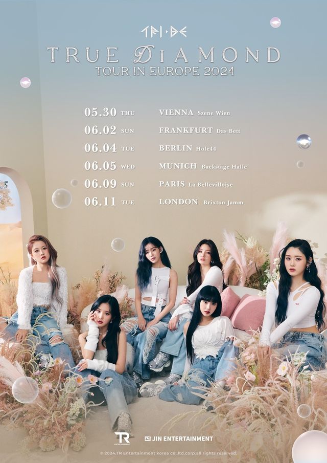 소속사 티알엔터테인먼트에 따르면 트라이비는 이달 30일부터 6월 11일까지 2024 유럽투어 'TRUE DIAMOND TOUR(트루 다이아몬드 투어) IN EUROPE 2024'를 개최한다.