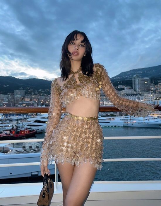 공개된 사진 속 리사는 황금빛 스팽글 셋업을 입고 요트 위에서 포즈를 취하고 있는 모습이었다. 크롭 기장 상의와 미니스커트로 드러낸 우월한 기럭지와 완벽한 비율은 '명품 몸매'를 완성했다.