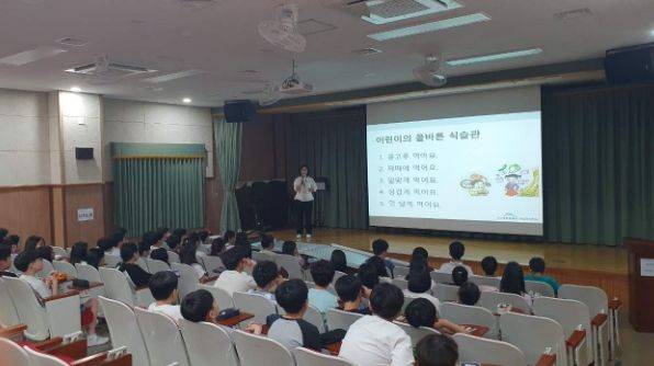 이날 교육은 ‘건강한 어린이의 올바른 식습관’을 주제로 ▲아침식사의 중요성 ▲골고루 먹기 ▲덜 달게, 덜 짜게 먹기 등의 내용을 식품구성자전거를 활용해 전달했다.