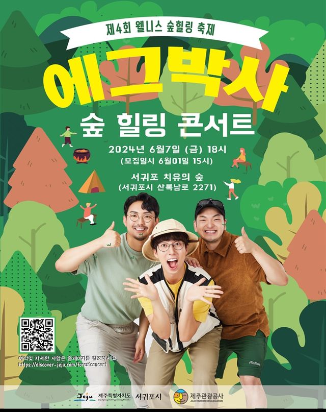 제주특별자치도와 제주관광공사는 6월 7일 서귀포 치유의 숲에서 '에그박사 숲 힐링 콘서트'를 개최한다고 27일 밝혔다. 이번 행사는 서귀포시가 주관하는 제4회 웰니스 숲 힐링 축제 특별 이벤트로 진행될 예정이다.