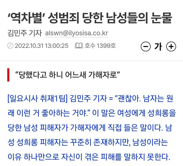 그러나 남성이 피해자인 경우는 증언? ㅗㅗ