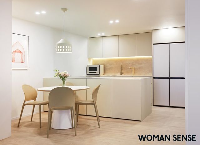 여성지 우먼센스에 따르면 토니안의 인테리어 요구는 단 하나였다. ‘밝고 따뜻한 집’으로 만들어 달라는 것. 숙면은 물론 팬들을 위한 물건 정돈의 공간, 밥에 진심인 토니안이 오래 머무를 수 있는 부엌에 최대한 신경을 썼다는 게 이번 인테리어 포인트다. 또 기존 가구와 새 가구를 디자인적으로 맞춰 익숙함을 더했다고. 덕분에 자연스럽게 예산을 줄이기도 했다.