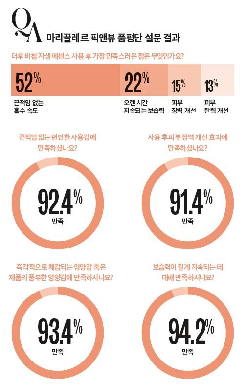 *마리끌레르 픽앤뷰 참가자 100명 대상 / ** 끈적임, 장벽 개선, 영양감, 보습감 등의 항목