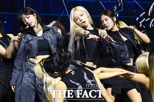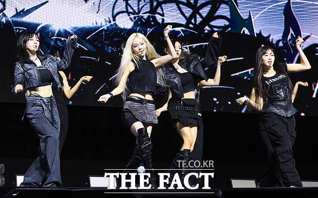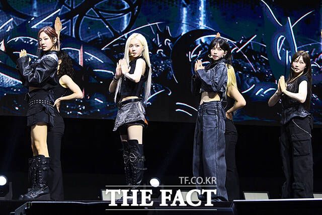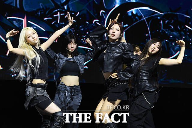 [더팩트ㅣ서예원 기자] 그룹 에스파가 27일 오후 서울 용산구 블루스퀘어 마스터카드홀에서 열린 첫 정규 앨범 'Armageddon(아마겟돈)' 발매 기념 쇼케이스에서 타이틀곡 'Armageddon' 무대를 펼치고 있다.